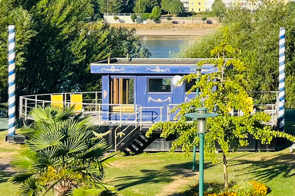 Der Freibereich unserer Kristall Therme liegt direkt am Rhein und besteht aus einer großen Liegewiese mit komfortablen Relaxliegen. Inmitten der Liegewiese befinden sich 2 Saunen in Form romantischer, venezianischer Gondeln. Das besondere Highlight: Steigt das Wasser im Rhein an und erfasst unsere Gondeln, treiben diese mit an die Oberfläche und verwandeln sich in schwimmende Saunaboote.