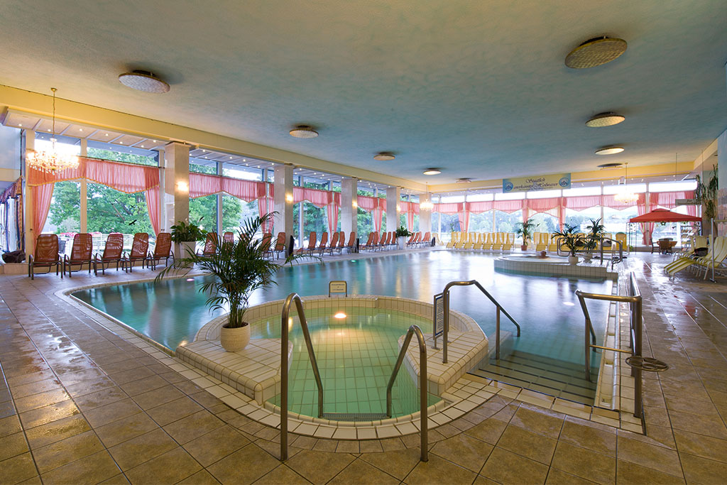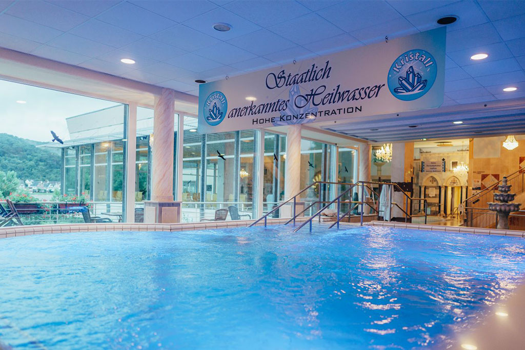 Die Kristall Therme verfügt über verschiedene Innen- und Außenbecken und Whirlpools, in denen das Wasser bis zu einer Temperatur von 35 °C und mit einer Solekonzentration von 1,5 % sprudelt. Für die körperliche Fitness sorgt unsere kostenlose Aquagymnastik,